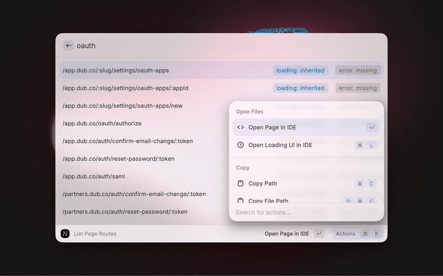 • Open routes/files in your IDE