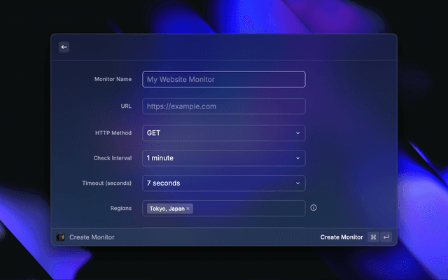 • Description: Create a new uptime monitor for your services
