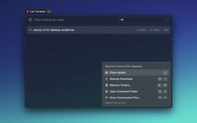 View and manage torrents directly from Raycast.
