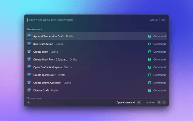 Create a Raycast Quicklink to open a Draft by passing a title and the UUID of the Draft.