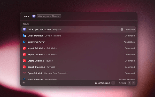 • ๐Ÿ” Quick Search: Find workspaces quickly with Raycast's search