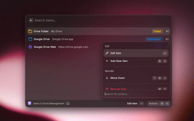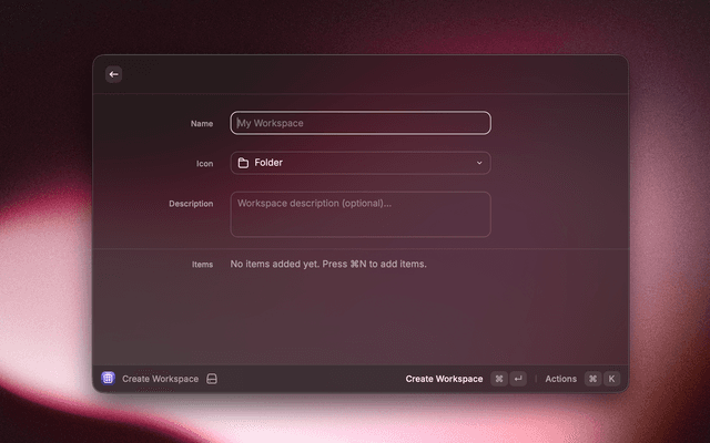 CLI-style quick launcher for instant access to any item across all your workspaces. Type to search and press Enter to open individual items without launching the entire workspace.