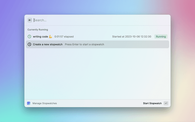 This is a lightweight extension allowing you to start and stop countdown timers, stopwatches, and alarms. It works directly in Raycast, no external apps or dependencies required. Now available in the Raycast Store!