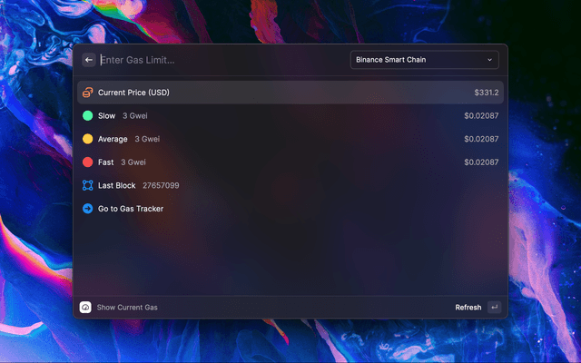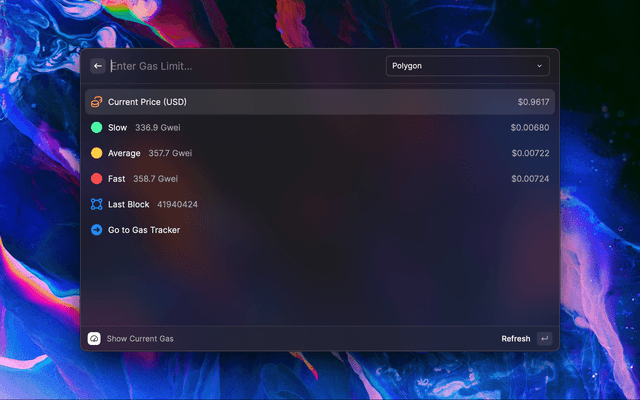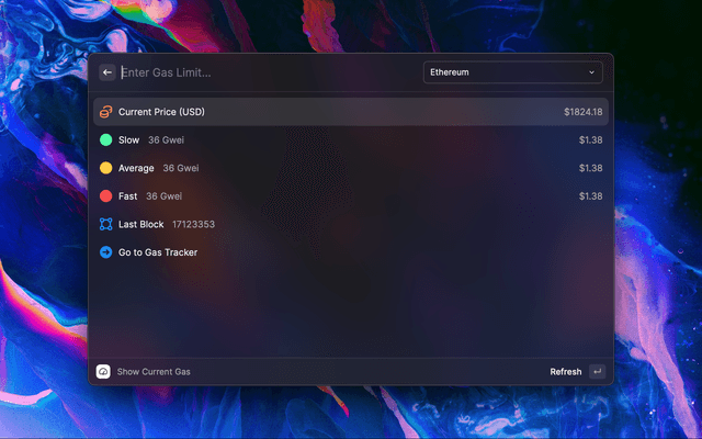 Track and caculate ethereum gas fee right in your Raycast. More blockchain network coming soon!