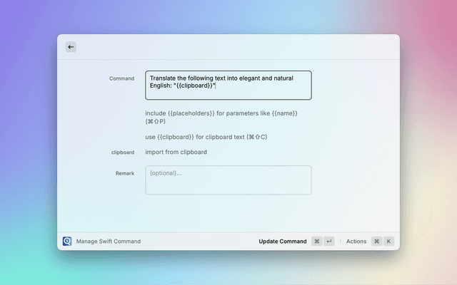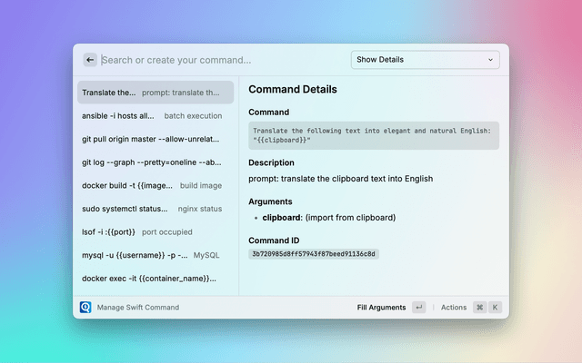 - Import aliases from your shell configuration files (supports .zshrc, .bashrc, and fish config)