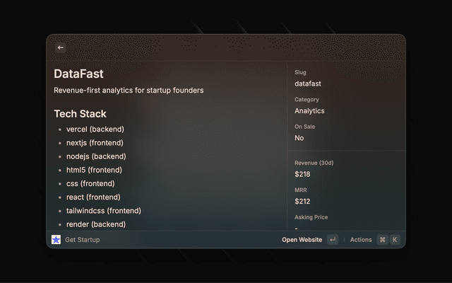 Browse TrustMRR startups and inspect detailed metrics.