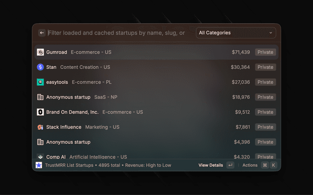 TrustMRR Raycast extension. Browse startups directly from Raycast.