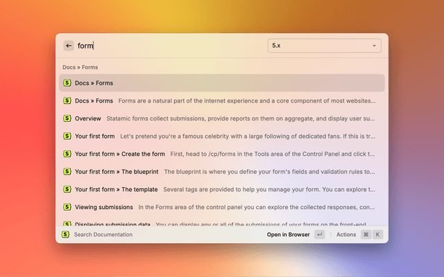This extension allows you to search the Statamic Documentation directly from Raycast.