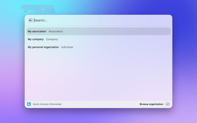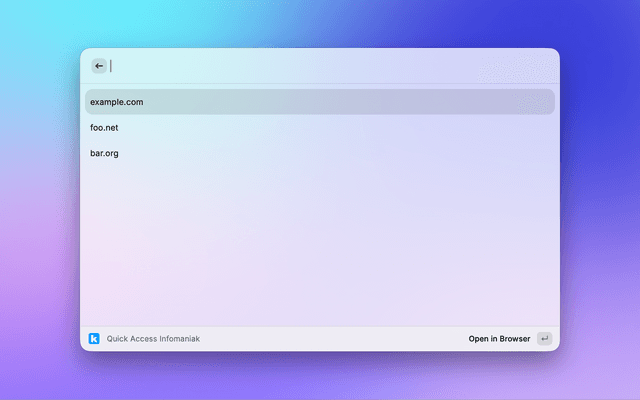Quick access to Infomaniak's manager pages (Domains, Hostings and Email services)