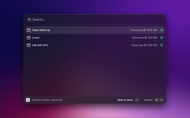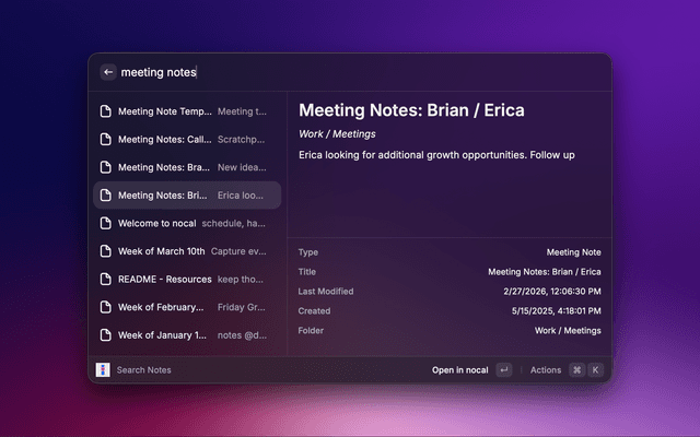 Search notes and manage your day from Raycast with nocal.