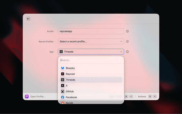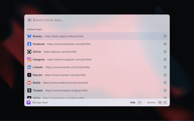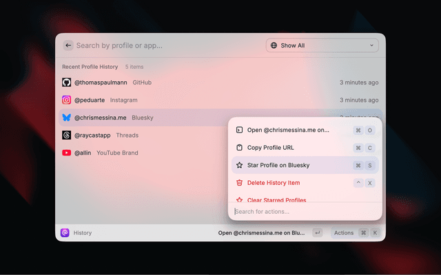 • Open Profile Command: Quickly open profiles across multiple social apps