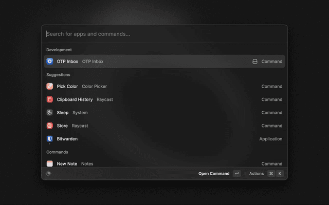 2. Open Raycast and run the OTP Inbox command