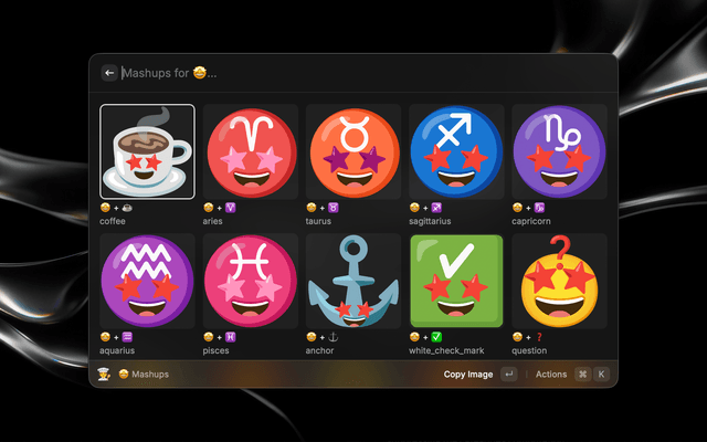 Google's Emoji Kitchen, but actually fast and native. Cook up 100,000+ combinations and paste the actual image file directly into Slack, iMessage, or Discord.