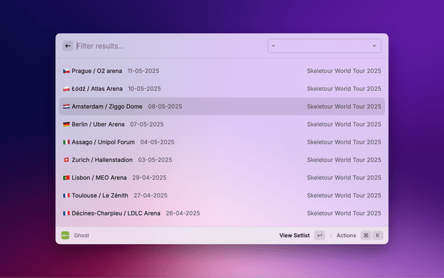 Lookup setlists on setlist.fm