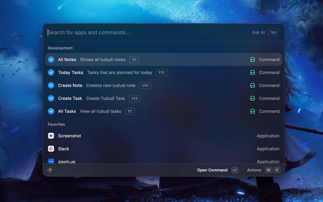 An extension to access tududi features from Raycast