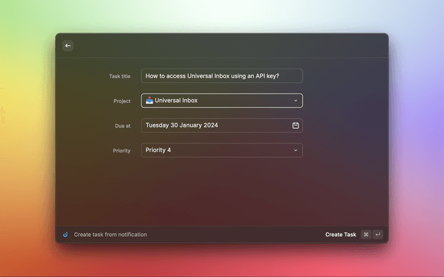 You can get an API Key from your Universal Inbox user profile page: