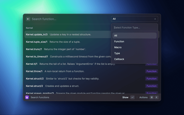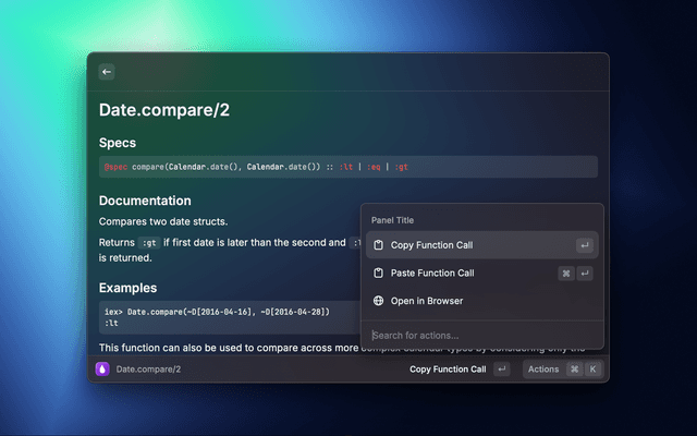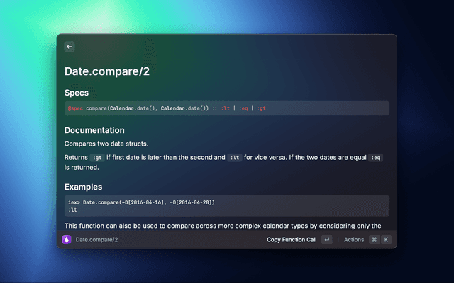Navigate Elixir's documentation without leaving Raycast.