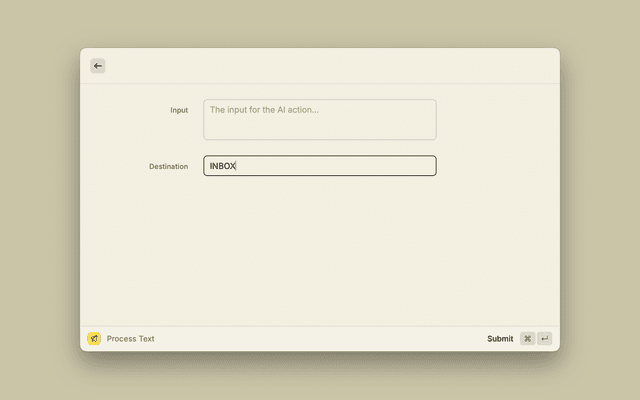 A Raycast extension to trigger Inbox AI actions directly from Raycast. Process text, audio, and screenshots with AI using your predefined actions.