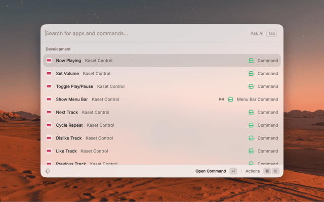 Control Kaset - YouTube Music client for macOS - directly from Raycast.