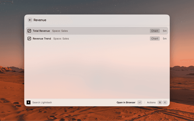 - Open Raycast and type "Search Lightdash"