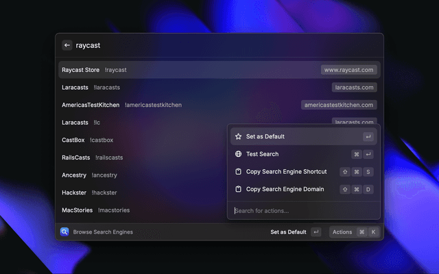 Search Router lets you search specific websites from Raycast using shortcuts by implementing Kagi Search bangs. For example: