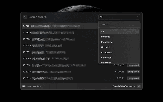 Browse and search WooCommerce orders, customers, and products across multiple stores from Raycast