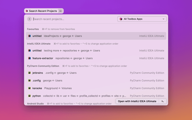 JetBrains Toolbox Search Recent Projects