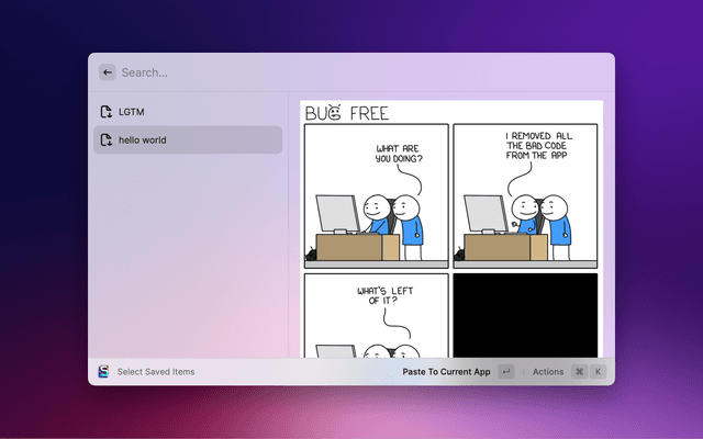 Save some items (eg. quick replies) and insert or copy them.
