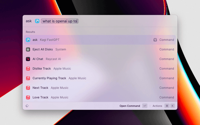 Ask questions to Kagi's FastGPT AI engine.
