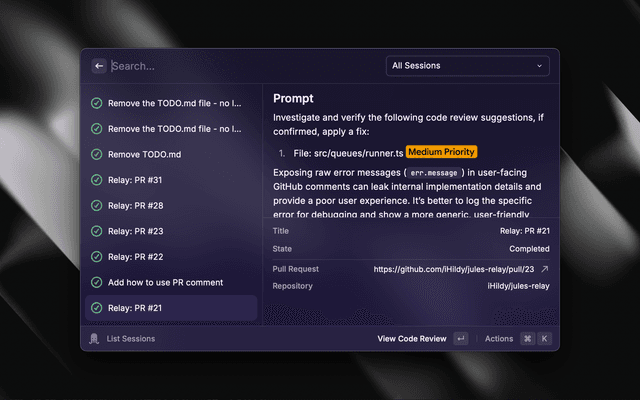 Manage and monitor your Google Jules sessions directly from Raycast.