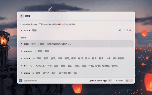 • Support to open the Eudic Dictionary and quickly look up words, if installed on your Mac.
