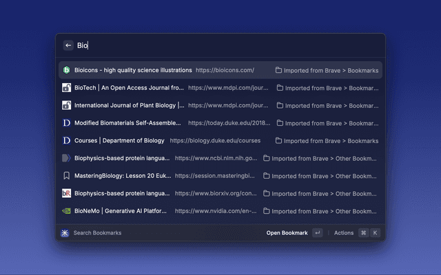 Navigate open tabs, bookmarks, and the web in Helium browser.