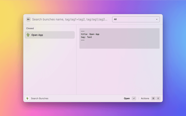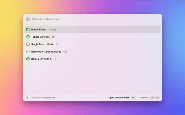 Control Bunch via Raycast. Bunch is a Mac automation tool from Brett Terpstra