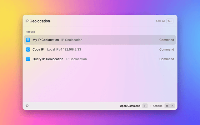 Show local and public IPv4/IPv6 address. Query geolocation for any IP address or domain.