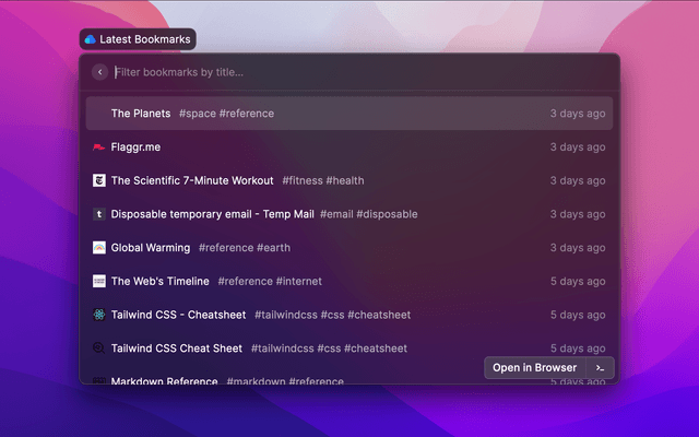 • Search bookmarks with natural language queries and get back summaries that include the collection and tags.