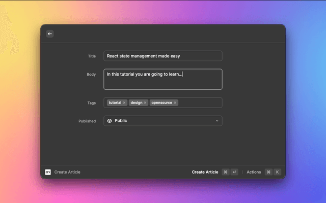 • Create Article. Start a new article directly from Raycast.