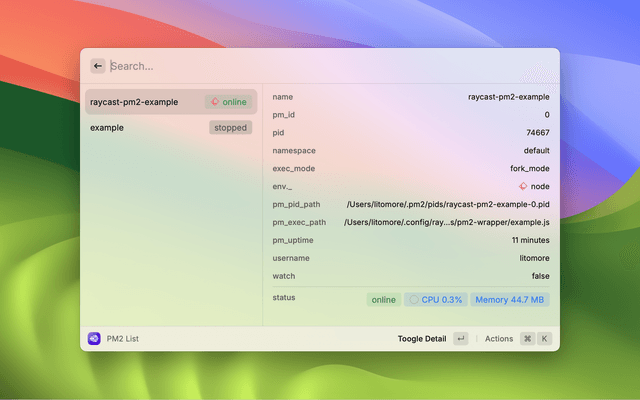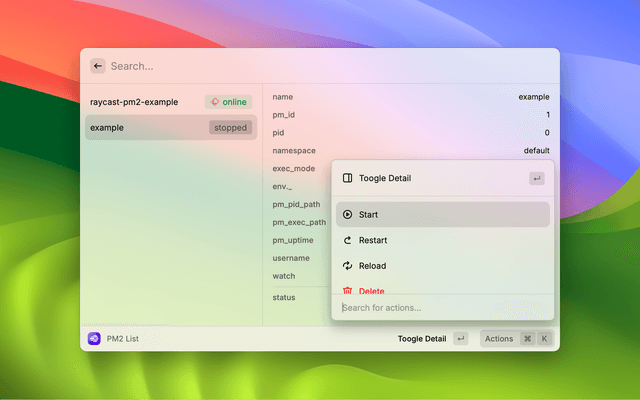• Run any Raycast Node.js application in PM2 through Cross-Extension