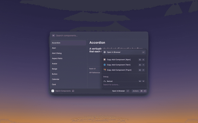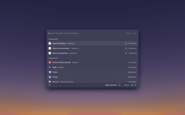 Raycast extension to Browse shadcn/ui documentation, components and examples