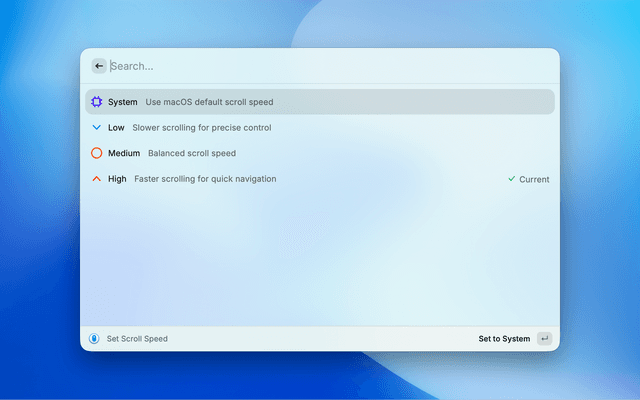 • Set Scroll Speed (system, low, medium, high)