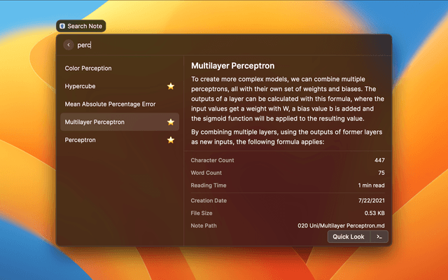 The Quick Look actions will open your note in Raycast itself.