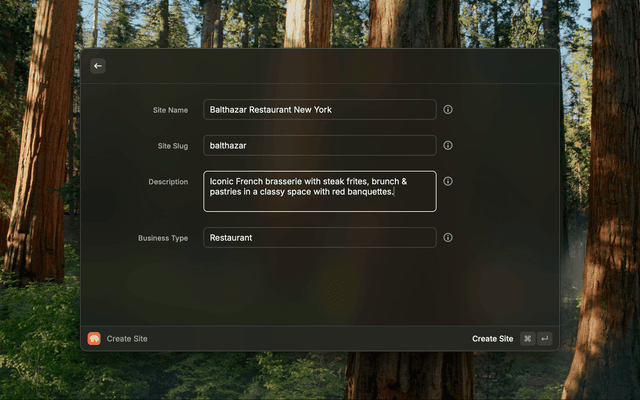 - Create Site: Quickly set up a new website