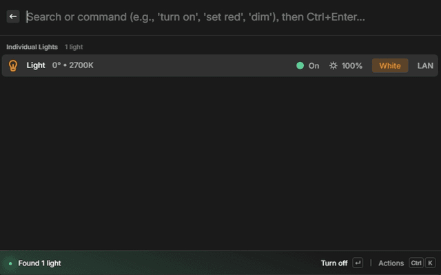 - Type Commands Naturally: Control your lights by typing commands like "set to electric blue and make it cozy"