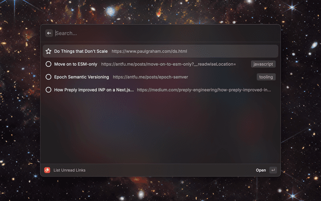 • List your unread content and quickly open links inside GoodLinks