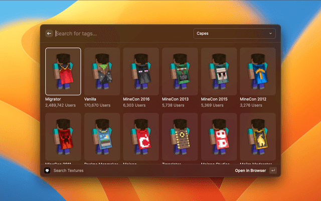 Search and view Minecraft user profiles and textures like skins and capes with data from laby.net.