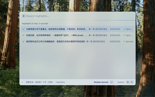 - Green Checkmark: All highlights are synced