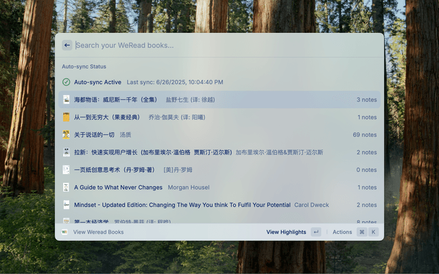 - WeRead Sync: Access your library, sync highlights, and manage sync operations