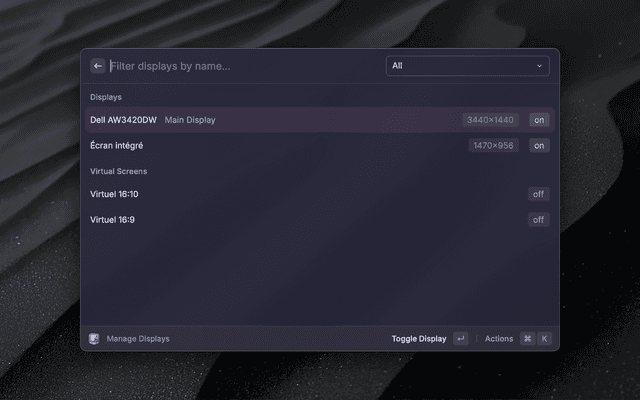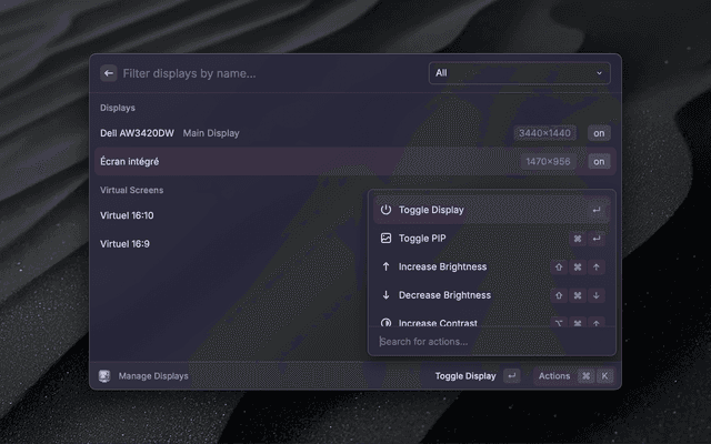 This extension allows you to control your display using BetterDisplay from the comfort of Raycast.