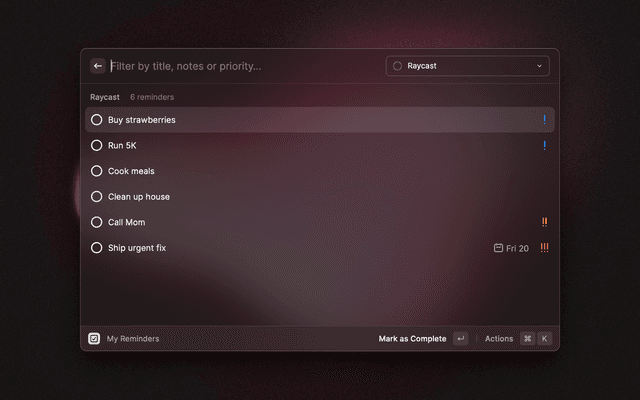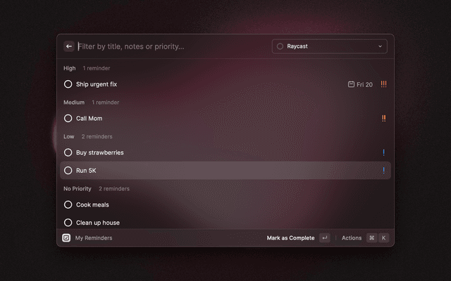 Make sure Raycast has access to your reminders in System Settings → Privacy & Security.