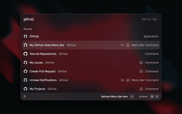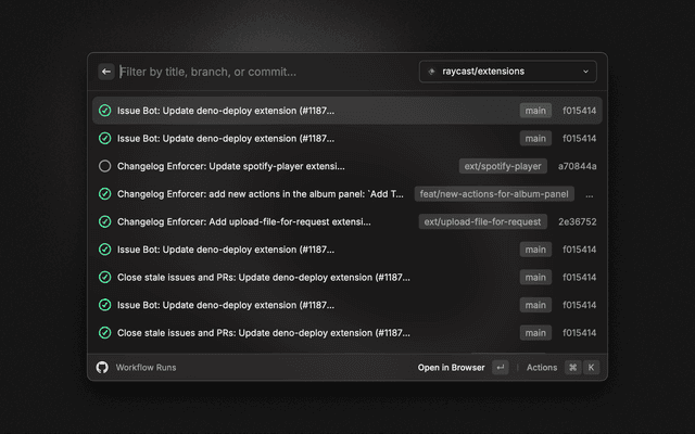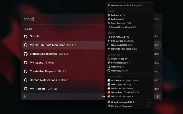 Double-check that you have enabled the correct settings for your organizations on the GitHub Oauth page to ensure that Raycast is able to show you the data from those repositories.
