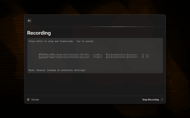 Record speech and convert it to clean text. Press Enter to stop recording and begin transcription. The result is automatically copied to your clipboard.
